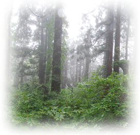 ①佐渡演習林にある樹齢数百年の天然スギの実物大ジオラマ