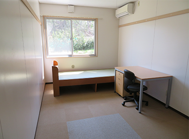 ・居室 9.45㎡ ・トイレ、洗面、バスルーム、シャワールーム、台所、洗濯機、乾燥機は共用 ・食事提供なし ・各居室に冷房なし暖房あり 個人での冷房設置・持ち込み不可 ・インターネット個人契約(指定業者) ・居室にテレビを設置する場合、NHK個人契約 |