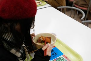 「うな次郎丼」を食べた学生からは、「ほろほろして本物のうな丼みたい」との感想も聞かれました。