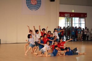 チームパフォーマンス 15分間の演技を3公演披露、日本とアジアの夕べ(National Performance )で輪の演技と日体大と筑波大の体操部と合同でGボールの演技をを披露、男子部員3人のみFIG GALA 3公演参加