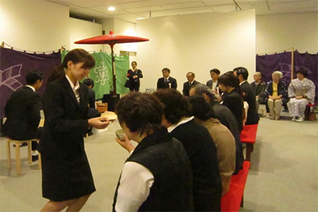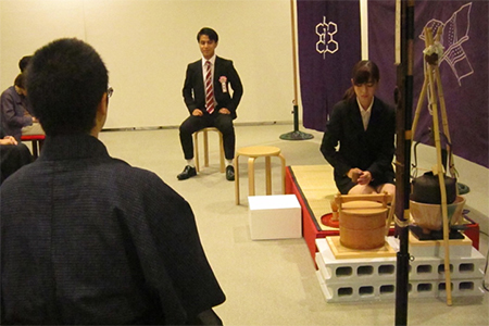 2年生の神村幸弥さんが後見を務め、1年生の田中真井さんが点前を披露しました。