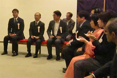 午前10時半頃、中原八一市長を始め市の文化政策担当部課長、新潟日報社中垣裕局長他、市民茶会石山実行委員長など来賓8人が新大茶道部の茶席にお見えになりました。市長は市民茶会は初めてとのこと。時間の関係で2席しか入れないとのことでしたが、その1席が新大茶道部席でしたので大変光栄でした。