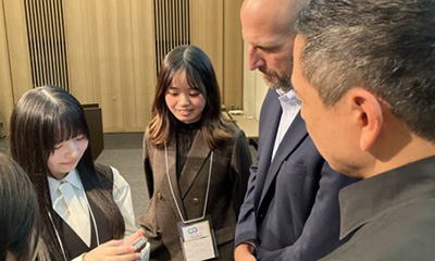 学術研究活動 2025年11月14日創生学部の三河円香さんと渡邉友貴さんが夏季集中セミナーでアプリの開発に取り組みプロの開発者を前に実践報告を行いました