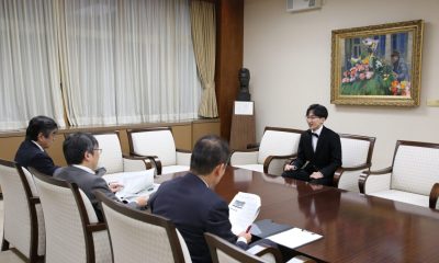 11月10日(月)、合唱団の全日本合唱コンクール全国大会への出場を祝し、激励会が開催されました。会には合唱団団長の大石田 和真さん、牛木学長、坂本理事、𠮷井学務部長が出席し、合唱団の健闘を祈りました。
