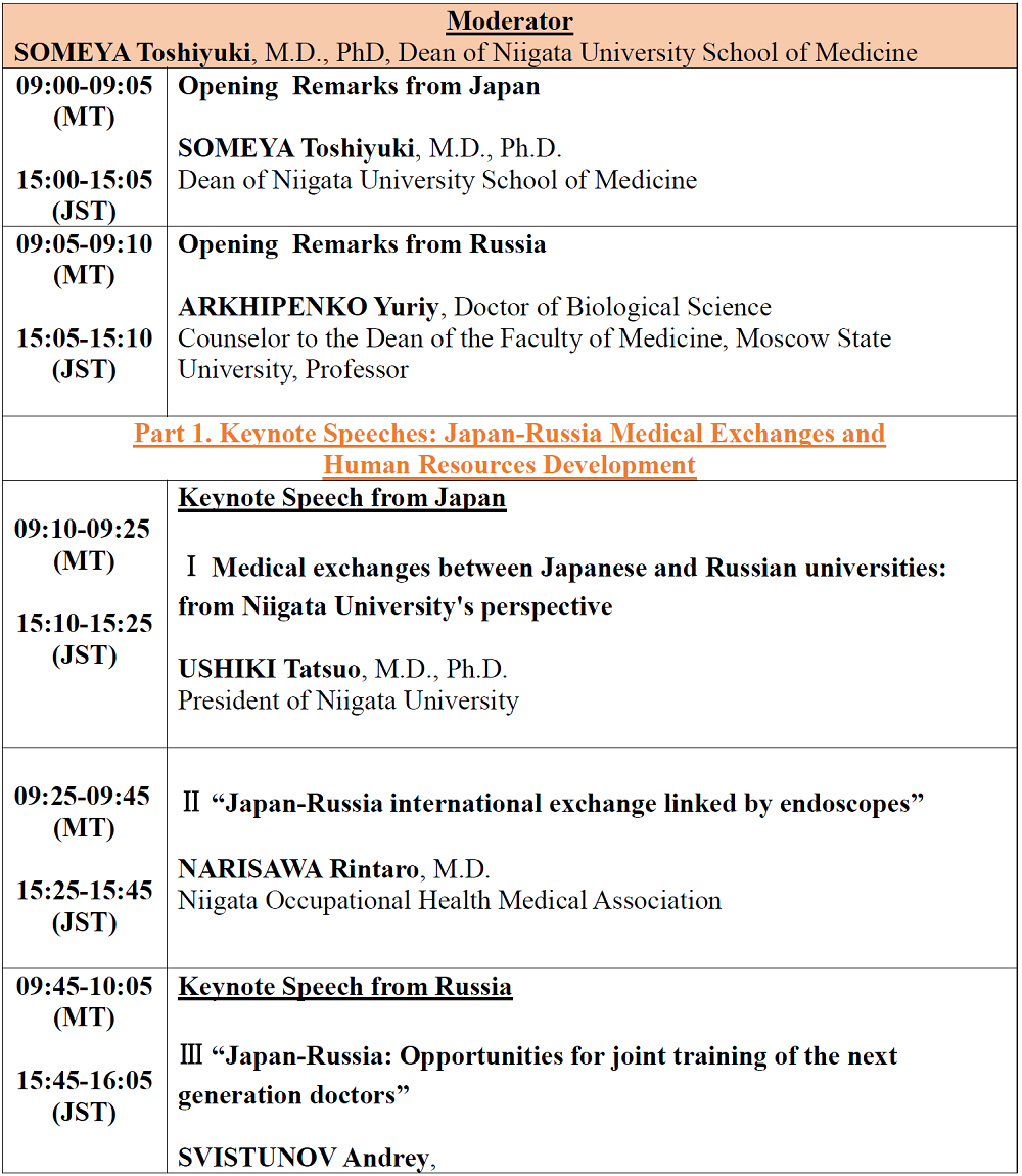 Part 1. Keynote Speeches: Japan-Russia Medical Exchanges and Human Resources Development