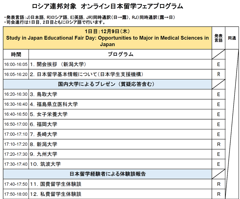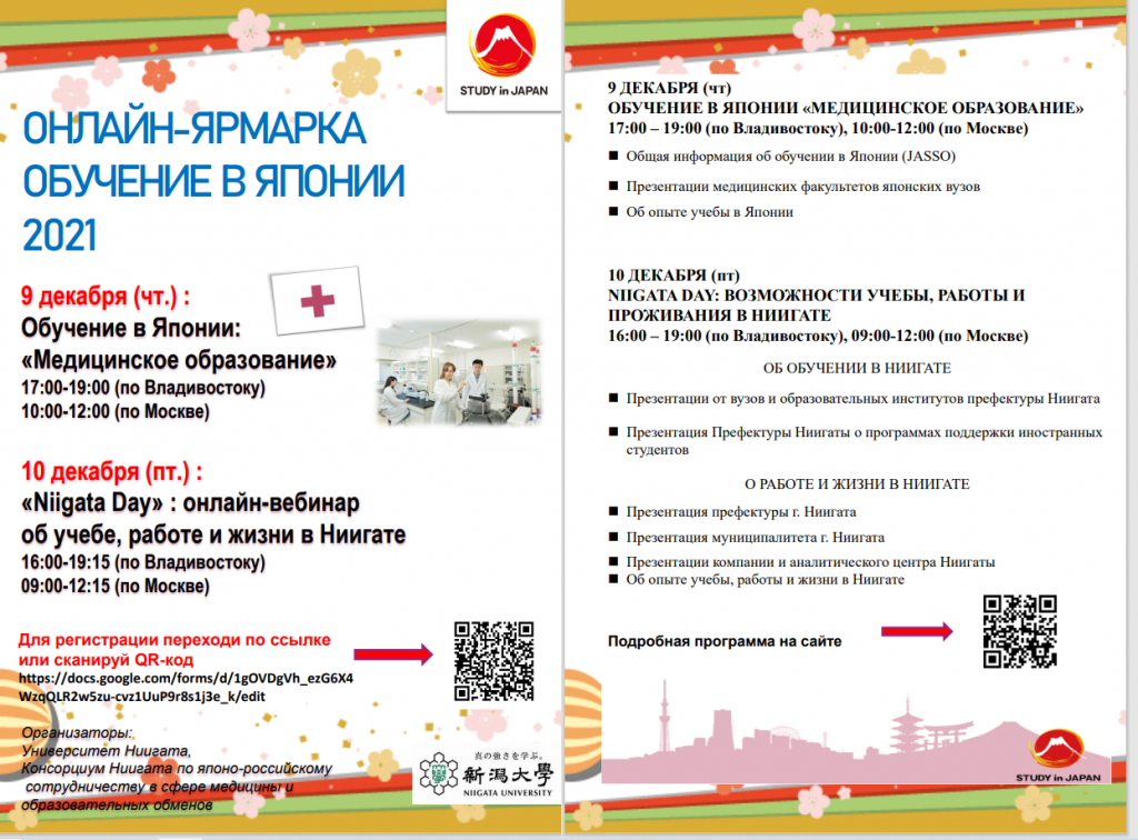 新潟大学は、2021年12月9日(木)および10日(金)の2日間にわたり、ロシア連邦向けに「日本留学フェア」をオンラインで開催します。