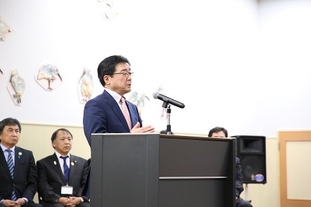 President Takahashi stated at the opening ceremony, "With forests, villages and the ocean, Sado Island enables us to comprehensively study diverse natural environments. We would like to work on educational research in cooperation with Sado City, using this center." A complimentary address by Mayor Miura followed, "We will further strengthen the collaboration of industry, government and academia to make Sado City more vibrant with the power of young university students."