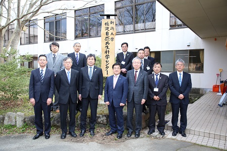 The signboard was then unveiled by Prof. Takahashi, President, Prof. Takahashi, Executive Vice President for Research, Prof. Sakio, the Director of the Center and Mr. Miura, the Mayor of Sado City.