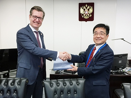 President Takahashi talked with Sergey Levin, the Russian Deputy Minister of Agriculture, on Saturday, May 11, 2019 at the Consulate-General of the Russian Federation in Niigata. The Deputy Minister of Agriculture was visiting Niigata to attend the G20 Niigata Agriculture Ministers' Meeting.