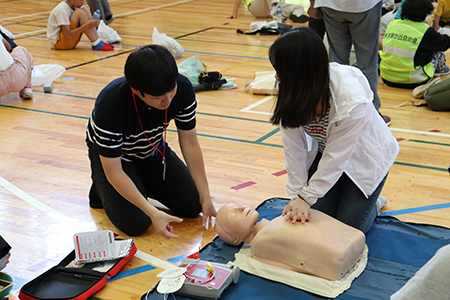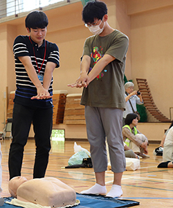 About 170 people, including the community association members, students, faculty, and staff of Niigata University as well as municipal staff, attended the drill. They confirmed the routes to the evacuation sites during a disaster, underwent smoke training, and studied about AED and first aid.