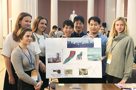 The five-day Forum was attended by about 60 students from Japanese and Russian universities. During the Forum, the students took part in the Russian-Japanese Scientific Forum conducted by Japanese and Russian researchers, experienced Russian culture, and lively discussed some issues including management of the future Japan-Russia Student Union. The group discussions were held as to a variety of topics, such as sociology, law, and our three students participated in the discussion group of economics and ecology, and gave presentations in English.