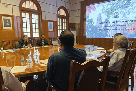 On December 18, 2023, President USHIKI Tatsuo paid a courtesy visit to the Indian Institute of Science (IISc) and exchanged views on further enhancing the student exchange activities and research collaborations between the two institutions.