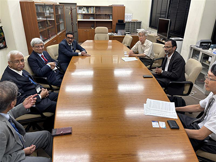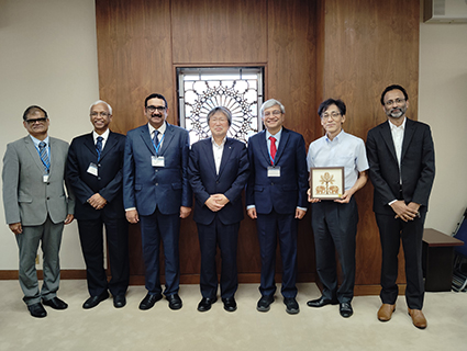 Courtesy Visit: President Ushiki (center); Director Rangarajan (3rd from right)The delegation also visited the Graduate School of Science and Technology, where Dean Norikazu Ohtori and Dean Eiichi Takazawa received them. NU’s Vice President for Research Satish Kumar joined discussions on joint supervision of graduate students and collaborative research opportunities.