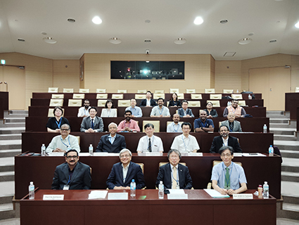 Group photo after the symposium. Front row (from left): Prof. P.S. Anil, Dean for Finance and Administration; center-left: President Rangarajan. Second row (from left, 2nd): Professor K.V.S. Hari, Director of CBROn Monday, September 8, the day before the symposium, the IISc delegation visited facilities at Niigata University. At the Brain Research Institute, Director Onodera provided an overview of the organization, followed by questions from the delegation concerning research resources. The session also included an exchange of views in preparation for the following day’s symposium, leading to lively discussions across a wide range of topics.