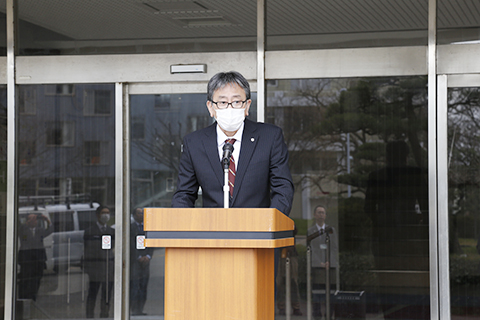 The Faculty of Economic Sciences, Niigata University, held the ceremony to put up its plaque at the building for Institute of Humanities and Social Sciences on Wednesday, April 1, Ikarashi Campus.
