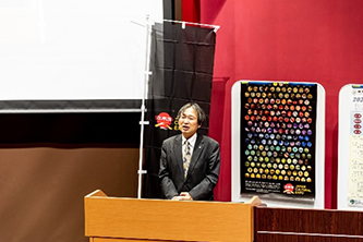 At the symposium, which was held for the third time, the activity reports on the Sakeology Center as well as the research reports by specially appointed assistant professors were presented. Furthermore, the speeches titled "Expectations for Sakeology" were delivered by people from government and industry, including Mr. Shunji ODAIRA, the chairpersopn of the Niigata Sake Brewers Association, Ms. Nami GOTOH, the president of the National Research Institute of Brewing, Prof. Tohru FUSHIKI, the chairperson of the Washoku Association of Japan, belonging to Ryukoku University, and Ms. Mikiko SAKAMOTO, the executive officer of the East Japan Railway Company.