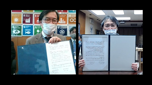 At the online signing ceremony on the same day, Prof. USHIKI, the President of Niigata University said; "We would like to contribute to the development of local and international communities in collaboration with JICA, the leading organization to promote especially SDGs." Mr. TANAKA Izumi, the Director General of JICA Tokyo delivered the address; "We would like to further promote student exchange from developing countries as a bridge between Niigata, Japan and home countries."