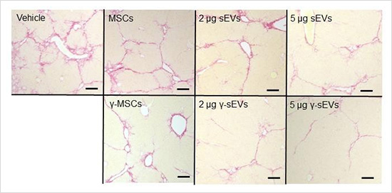 They report that both human adipose tissue-derived MSCs (AD-MSC-sEVs) and AD-MSC-γ-sEVs can promote macrophage motility and phagocytic activity. In addition, they also show that AD-MSC-γ- sEVs contain anti-inflammatory macrophage inducible proteins and can effectively control inflammation and fibrosis in a mouse model of cirrhosis. Following single-cell RNA-seq application, they confirmed AD-MSC-γ-sEVs therapy can induce multidimensional transcriptional changes. Taken together, these results suggest that AD-MSC-derived sEVs can affect the shape and function of macrophages and effectively recruit them into damaged areas, thereby promoting damaged liver tissue repair.