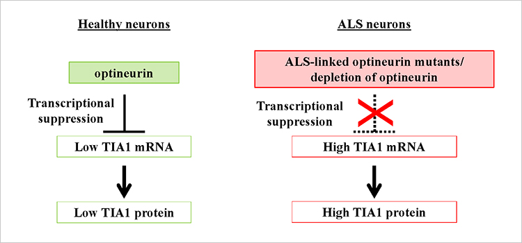 Figure 2. Key TIA1 suppression. Optineurin inhibits TIA1 transcription through an NF-κB-independent manner.