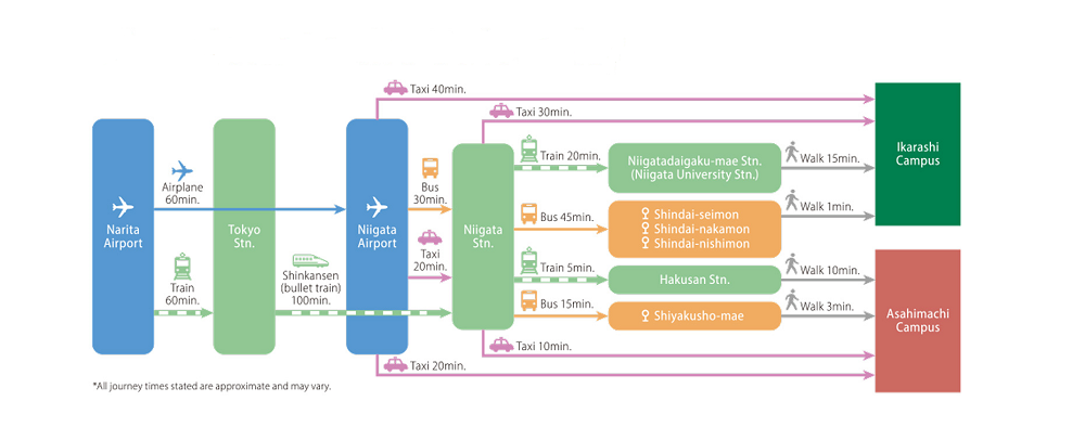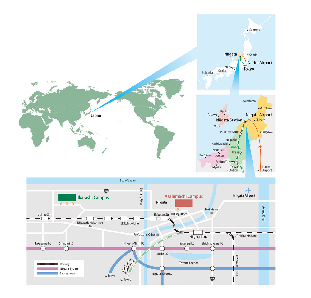 Niigata is easily accessed from major cities in Japan as well as around the world as being served by an international airport, the seaport, bullet and local trains and numerous expressways.