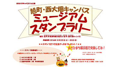- あさひまち展示館と医歯学図書館を結ぶスタンプラリー。スタンプを集めると展示館にて特製グッズを贈呈。