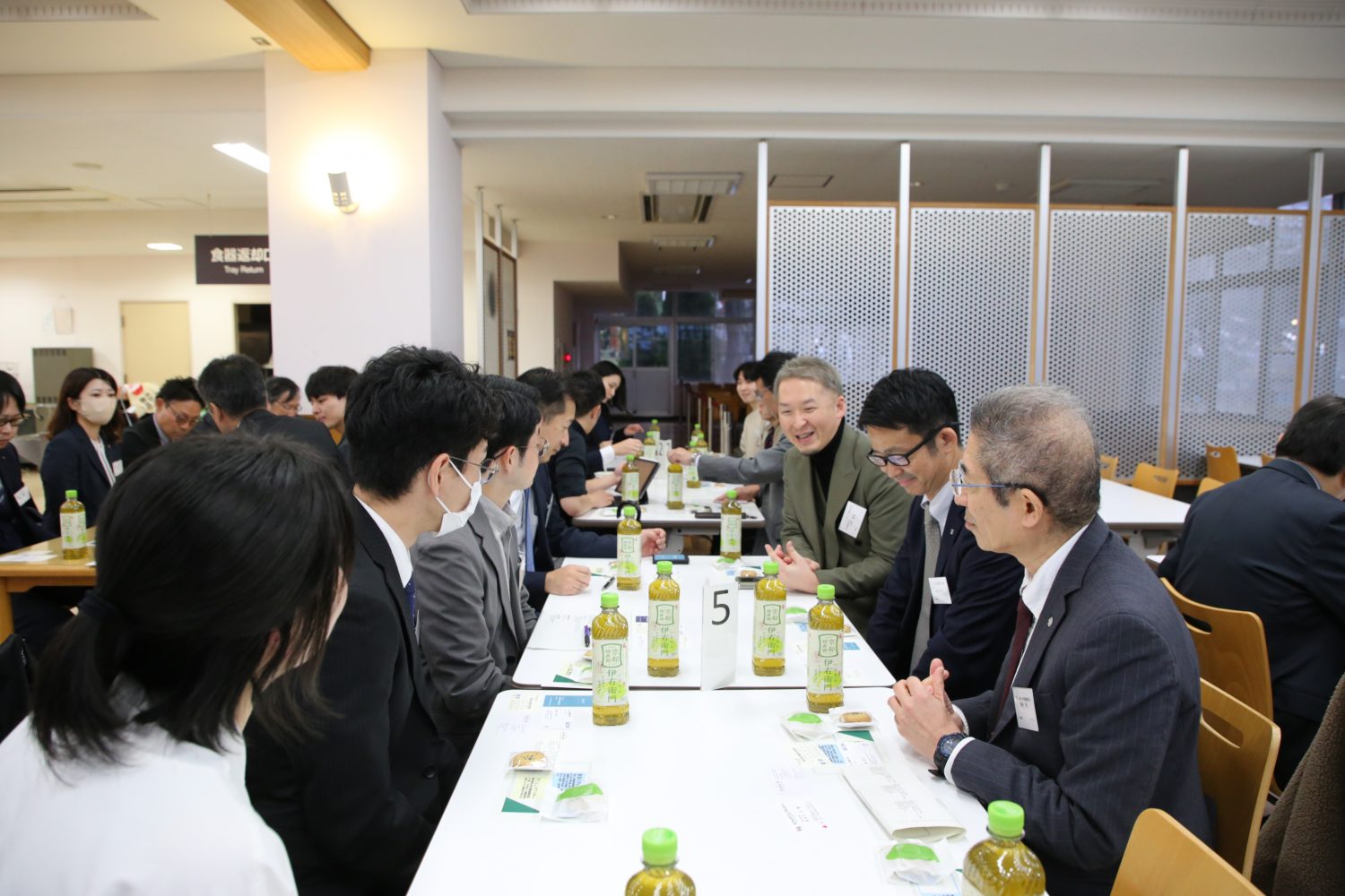 その後、生協第三食堂に移動し、テーブルごとに倶楽部会員と学生が意見交換を行いました。
