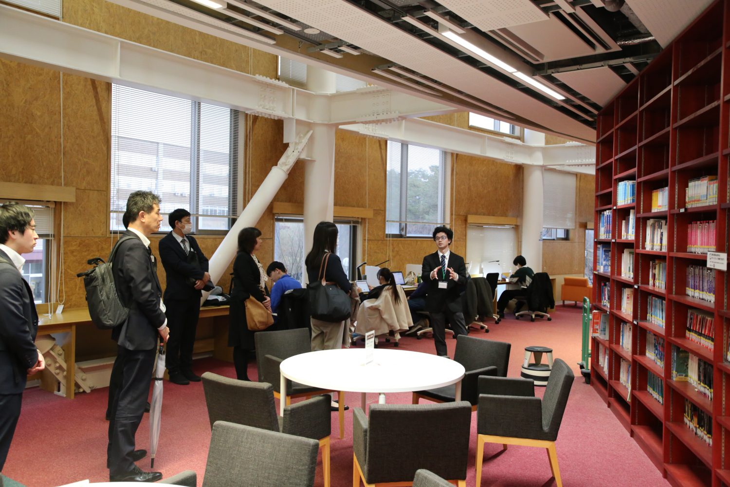 発表の様子報告会終了後は、五十嵐キャンパス内の施設を紹介するキャンパスツアーを実施しました。図書館や学生寮、課外活動施設を実際にご覧いただき、本学の取り組みについて理解を深めていただく機会となりました。