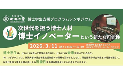新潟大学博士学生支援プログラムシンポジウム(次世代事業報告会)「次世代を担う博士人材 博士イノベーターという新たな可能性」を開催します