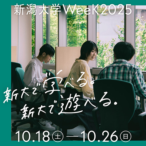 本学は、10月18日(土)~10月26日(日)の期間を中心に、“新大で学べる。新大で遊べる。”をキャッチフレーズに、大学祭や講演、体験イベントなど、29のイベントを実施します。さらに、今年度は古町ルフルで特別企画を10月26日(日)に限定開催します。