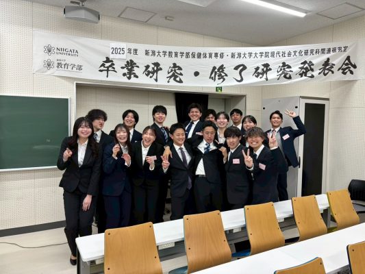 私は卒業後、大学院に進学します。新潟大学で学んだことを糧に、これからは学会や就活など学外での人との出会いも大切にしたいです。何事にも好奇心を持って挑戦し、日々成長していきたいと思います。