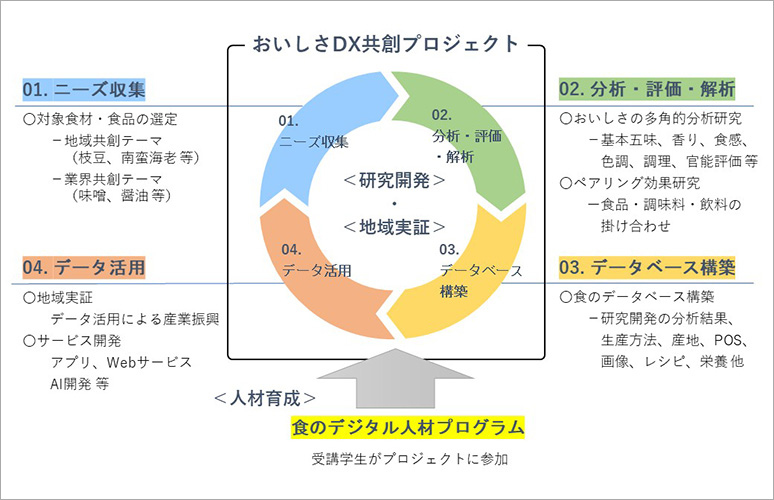 また、おいしさDXプロジェクトは、人材育成の面でも重要な役割を果たす。学部生や大学院生を対象とした人材育成プログラムと、社会人を対象としたリスキリングプログラムの新設を計画している。
